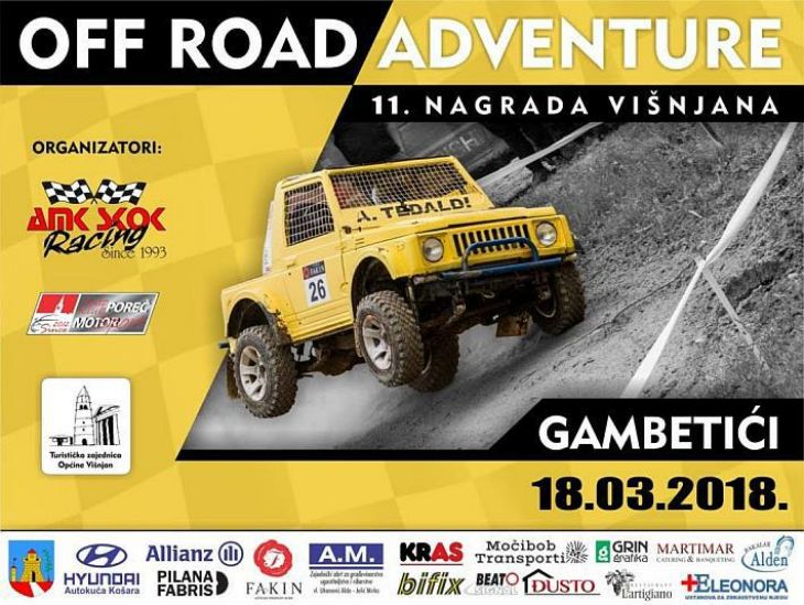 Pozivamo Vas na otvorenje 1. natjecanja Prvenstva istarske rivijere u off road-u što će se, pod nazivom 11. Nagrada Višnjana, održati u nedjelju, 18.03.2018. s početkom u 12,00 sati na novoj stazi u Gambetićima.