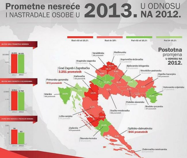 Prema podacima dobivenim od Ministarstva unutarnjih poslova, ukupan broj prometnih nesreća i poginulih osoba na hrvatskim prometnicama u prvom kvartalu 2013. godine je smanjen u odnosu na isti period 2012. godine. Na regionalnoj razini, trend nije ujednačen te postoje županije u kojima je primjetan drastičan porast (Međimurska, Varaždinska i Zadarska) dok prvo mjesto po broju…