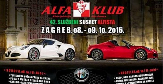Zadovoljstvo nam je da Vas možemo pozvati na 42. Međunarodni susret Kluba ljubitelja Alfa Romea koji će se održati 8. i 9. listopada 2016. godine u Zagrebu i okolici. organizator je pripremio bogat program, puno zabave te mnoštvo lijepih Alfi. Naravno, tu je i nezaobilazno druženje, razmjena iskustava i dobar provod! Detalje o susretu potražite…