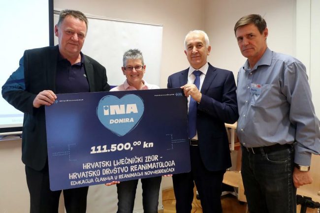 INA je Hrvatskom društvu reanimatologa pri Hrvatskom liječničkom zboru svečano uručila donaciju u vrijednosti od 111.500 kuna. Donaciju su primili prof.dr.sc. Boris Filipović-Grčić, voditelj radne skupine za reanimaciju novorođenčadi Hrvatskog društva reanimatologa i prim. dr. Milivoj Novak, pomoćnik ravnatelja za kvalitetu zdravstvene zaštite i nadzor KBC-a Zagreb, a predao član Uprave Ine g. Niko Dalić.…