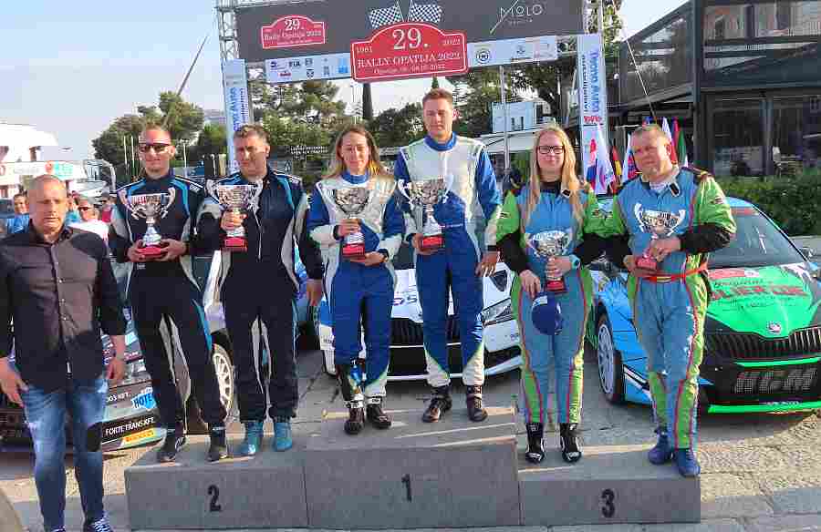 OPATIJA – Uoči natjecanja slovili su favoritima i tu časanu ulogu opravdali tijekom cjelodnevnog natjecanja osvojivši najbolja vremena na svih osam brzinskih ispita. Austrijsko-slovenska posada Simon Wagner – Pia Šumer, u Škoda Fabia Rally2 Evo, ukupni su pobjednici 29.međunarodnog Rally Opatija 2022., na kojem je ovog vikenda u organizaciji Autokluba Opatija sudjelovalo 66 posada iz 11 europskih zemalja. Tijekom 101,77 km brzinskih ispita na istarskim dionicama Ćićarije utrošili su 55:20,6 minute i za pobjedu stekli prednost od 2.45,3 minuta ispred Mađara Petera Osvatha i Tamasa Pappa, koji su vozili Škoda Fabia R5. Do trećeg je mjesta pobjedničkog postolja u konačnici stigla njemačka posada Stefan Gottig i Natalie Solbach-Schmidt u još jednoj Škoda Fabia R5, čiji je zaostatak za pobjednikom bio veći od tri minute. Zbog jedne pogreške kasnog ulaska u vremensku kontrolu poziciju postolja ukupnog poretka izgubila je mađarska posada Matics-Nemeth koja je dulji period bila trećeplasirana.