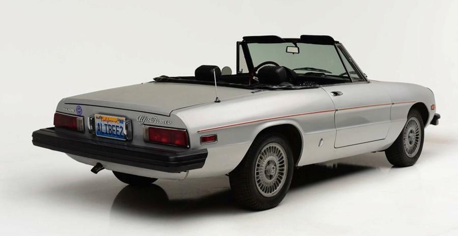 Alfa Romeo Spider Ispod prednjeg poklopca ima 2,0 litreni redni četverocilindrični motor najveće snage 127 KS koji je u kombinaciji s ručnim mjenjačem s pet stupnjeva prijenosa. Karoserija je srebrne boje, a unutrašnjost je crna koža s trokrakim drvenim kolom upravljača.