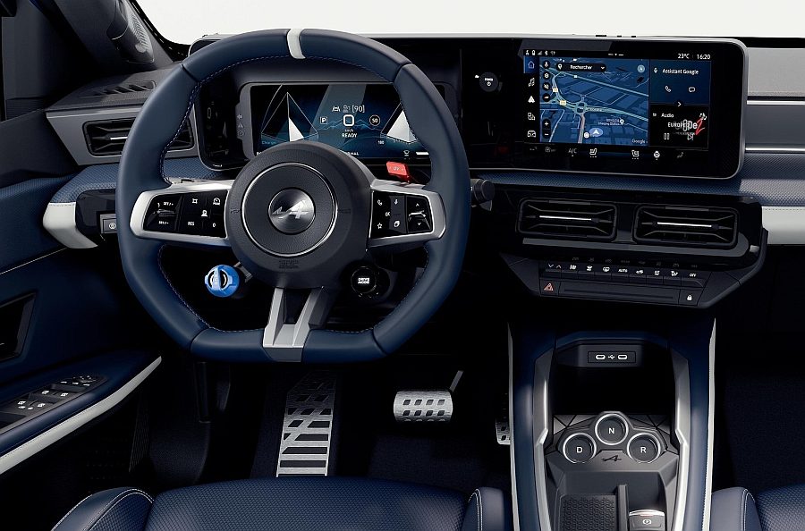 Zaslon s instrumentima od 10,25 inča iza upravljača i središnji zaslon infotainment sustava od 10,1 inča usmjeren prema vozaču, sa svojom specifičnom grafikom, sučeljima i funkcijama, doprinose jedinstvenoj atmosferi modela A290. Ovo impresivno digitalno iskustvo odražava se u jedinstvenim vizualnim temama u skladu sa sportskim šikom kokpita A290. Grafički kodovi instrumentne ploče okrenute prema vozaču odmiču se od tradicionalnih okruglih brojčanika kako bi usvojili trokutastu temu sa žičanom strukturom. Ovaj precizni geometrijski simbol pruža vrlo čitljiv prikaz razine isporučene ili napunjene snage s lijeve strane i brzine s desne strane, uključujući crvenu liniju koja simbolizira ograničenja brzine dešifrirana sustavom za očitavanje prometnih znakova. Razina regeneracije prikazana je na dnu ekrana. Nova tipografija brzog prikaza je i oštra i zaobljena te postavljena na plavu pozadinu ekrana s planinskim siluetama, jednim od zaštitnih znakova Alpine.
