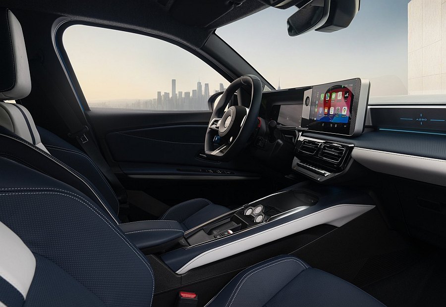 Sportska papučica i oslonac za noge upotpunjuju ergonomiju sportskog vozačkog položaja modela A290. Središnji zaslon od 10,1 inča nagnut je prema vozaču, a fizičke kontrole klima-uređaja mogu se podešavati bez skretanja pogleda s ceste. Visoka središnja konzola između dva sjedala nadahnuta je kultnim dizajnom modela A110 i uključuje RND kontrole mjenjača. Svaki detalj ovog područja pažljivo je razmotren, s imenom automobila utisnutim na središnjem naslonu za ruku, Alpine ‘Snowflake’ zrncima na utoru za ključeve, a konzolom presvučenom vrhunskom Nappa kožom. Sjedala, temeljna komponenta svakog sportskog automobila, pomno su dizajnirana u A290. Nude bočno pojačanje za dodatnu potporu bez ugrožavanja svakodnevne udobnosti. Presvučeni ekološki prihvatljivim materijalima, oni su dokaz naše predanosti održivosti. U prvim razinama opreme, sjedala su presvučena zrnatom presvučenom tkaninom (15% reciklirana plastika i vlakna konoplje) u kombinaciji s tamnoplavom 100% recikliranom tkaninom sa silicijevim kontrastnim šavovima i elektro-zavarenim logotipom A u obliku strelice u gornji dio naslona. Armaturna ploča, bočne strane središnje konzole i paneli vrata podstavljeni su zrnatom tkaninom.