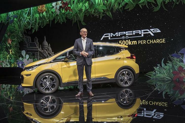 Glavni izvršni direktor Opela dr. Karl-Thomas Neumann na Pariškom sajmu automobila je predstavio revolucionarnu Opel Amperu-e. Ova zvijezda sajma nudi prema NEDC-u domet veći od 500 km (električni domet mjeren prema Novom europskom voznom krugu u km: > 500 km, preliminarna brojka), što je najmanje 100 km više od najoštrijeg konkurenta u segmentu koji je danas na cestama. Opelov je štand zelen kao urbana džungla i tako odražava glavnu temu – održivu mobilnost. Tijekom svog govora na Opelovoj konferenciji za medije dr. Neumann je rekao: „Evo naše posve nove Ampera-e pod motom ‘Das Elektroauto!’ – električno vozilo za svakoga. Nova Ampera-e redefinira električnu mobilnost tako što uklanja najveću prepreku: domet. Na temelju nekoliko preliminarnih NEDC testova, vozilo može uz jedno punjenje prevaliti više od 500 km. A kad korisnik želi ponovno napuniti baterije, mogu dobiti dodatnih 150 km dometa za samo 30 minuta punjenja na javnoj postaji za punjenje1. Predstavit ćemo ovaj automobil u Europi u prvoj polovici iduće godine.“