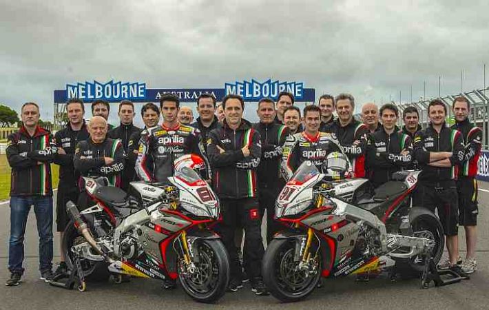 Talijanska marka, nositelj dvostrukog naslova prvaka iz 2014. godine, jedan među konstruktorima, a drugi među vozačima koji je osvojila u posljednjoj utrci prvenstva, spremna je za sezonu 2015. u novom sastavu uz dva nova vozača koji će voziti Apriliju RSV4, motocikl koji već posljednjih nekoliko godina dominira WSBK prvenstvom. Aprilijina zbirka pehara u Superbike prvenstvu poprilično je impresivna: 7 naslova prvaka u samo 5 sezona počevši od 2010. godine. Riječ je o neospornoj nadmoći Aprilije u klasi koja proizlazi iz serijskih motocikala. Ti su naslovi doprinijeli ukupnom sportskom uspjehu Aprilije koja nosi 54 naslova prvaka u različitim motociklističkim disciplinama (MotoGP, Superbike i Off-road) te je jedna od najtrofejnijih marki u povijesti. Na Apriliji RSV4 s brojem 91, čiji tim vodi Enrico Folegnani, engleski je vozač Leon Haslam. Ovaj tridesetdvogodišnjak iz Eealinga, koji je 2010. godine osvojio drugo mjesto u WSBK prvenstvu, već je imao priliku pokazati svoj potencijal na Apriliji RSV4 tijekom zimskih testiranja. Na drugoj strani garaže, pod tehničkim vodstvom Lucia Gomesa, debi u Superbike prvenstvu ostvaruje dvadesetsedmogodišnji Španjolac Jordi Torres čija Aprilia RSV4 nosi broj 81.