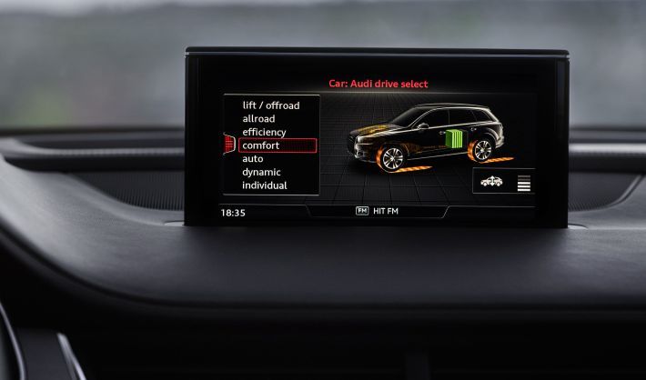 Na putu, pomoć za predviđanje učinkovitosti osigurava precizne bliske informacije kako bi vozaču pomogla uštedjeti gorivo. Koristeći navigacijske i podatke kamere, kao i informacije radarskih senzora opcijskog prilagodljivog tempomata (ACC), sustav generira detaljni prikaz rute do tri kilometra ispred vozila. Prilikom približavanja znakovima ograničenja brzine, naseljenih mjesta, zavojima, kružnim tokovima i križanjima, sustav vizualno signalizira vozaču da što je ranije moguće pusti papučicu gasa. U isto vrijeme, aktivna papučica gasa šalje impuls u stopalo vozača. Višenamjensko vozilo za slobodno vrijeme, obitelj, sport i posao, Audi Q7 e‑tron quattro također bez napora svladava sve terene. Kontrola brzine pri spuštanju i terenski način vožnje za elektronsku kontrolu stabilnosti vozila ESC dio su standardne opreme. Prikaz nagiba karoserije dio je standardne opreme sa zračnim ovjesom.