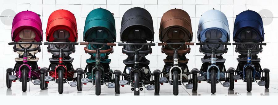 Bentley Trike dizajniran je i konstruiran u suradnji s automobilskom tvrtkom Bentley Motors, a prema konstruktorima ova kolica odličan su spoj elegancije i funkcionalnosti. Može mijenjati oblik i funkciju, a pritiskom samo na jedno dugme može se rotirati dječje sjedalo te voziti dijete unazad ili prema naprijed. Gume se pumpaju zrakom, sprijeda su kotači od 12 cola, a straga 10 cola.