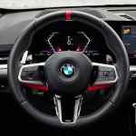 Dizajn kokpita također specifičan za M također igra svoju ulogu u stvaranju doživljaja performansi visokog intenziteta unutar kabine. Istaknute značajke uključuju ploču s instrumentima presvučenu alcantarom, aluminijske hexacube tamne unutrašnje ukrasne elemente, antracit boju stropa, M obloge pragova, M pedale, M-specifičnu grafiku BMW Curved Displaya – i, opcijski, BMW Head-Up Zaslon – i M kožni upravljač s ručicama za mjenjač. Standardna oprema za novi BMW X1 M35i xDrive također donosi crna Veganza/Alcantara sportska sjedala s plavim kontrastnim šavovima. Alternativno se mogu naručiti kao opcija obrubljene Vernasca kožom s posebnim dijamantnim prošivom. Na popisu opcija su i M Sport sjedala. Oni nude širok raspon električnog podešavanja (uključujući funkciju memorije za vozačevo sjedalo), imaju integrirane naslone za glavu i imaju osvijetljeni M logo u gornjem dijelu naslona. Intenzivno sportski interijer ugođaja ide ruku pod ruku s neograničenom funkcionalnošću. Naslon stražnjeg sjedala novog BMW X1 M35i xDrive dijeli se i preklapa u omjeru 40 : 20 : 40, a kut nagiba svakog dijela također se može podesiti pojedinačno. Opcijsko podešavanje stražnjih sjedala naprijed/natrag donosi još veću varijabilnost. Kapacitet prtljažnika može se povećati sa 540 litara na najviše 1600 litara.