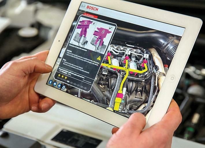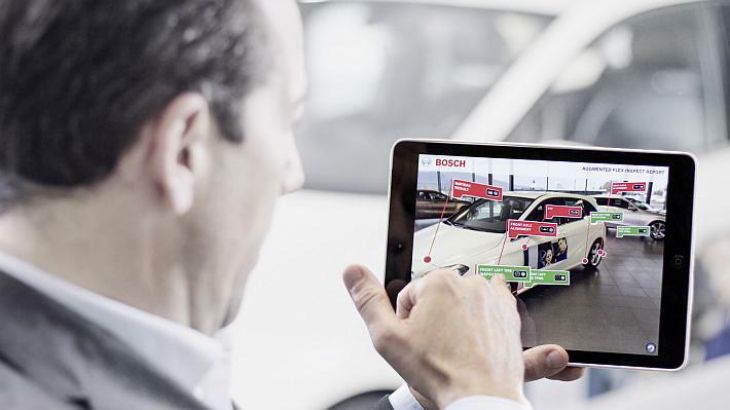 Proširena stvarnost povezuje fizički i virtualni svijet, a time se omogućuje osmišljavanje posve novih metoda rada za modernu radionicu. Kad zaposlenici usmjere kameru pametnog telefona ili tableta prema vozilu, na stvarnoj slici vozila prikažu se važne dodatne informacije. Obuhvaćena mogu biti objašnjenja kao što su upute za rukovanje, strujne sheme, trodimenzionalni predmeti, fotografije ili videozapisi. S pomoću takvih informacija lakše je otkriti kvarove i povećati radnu učinkovitost. Proširena stvarnost također može spasiti živote. U suradnji s društvom Daimler AG Bosch je razvio aplikaciju koja pomaže vatrogascima razrezati vozila. Temelji se na Boschevoj Zajedničkoj platformi proširene stvarnosti (CAP; Common Augmented Reality Platform), koja se može upotrebljavati za izradu aplikacija za brojne modele vozila. CAP tako omogućuje uporabu proširene stvarnosti na industrijskoj razini.