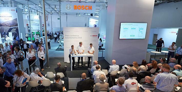 Na sajmu Automechanika u Frankfurtu (od 13. do 17. rujna), Bosch je predstavio širok asortiman komponenata, sustava i usluga. Također, tvrtka je predstavila rješenja koje veletrgovci i radionice mogu upotrebljavati kako bi povećali učinkovitost svojih procesa i prošire svoju ponudu usluga. „Kad je riječ o povezivosti, proširili smo svoju cjelokupnu ponudu u rasponu od vozila i radionica do trgovaca na veliko.“, izjavio je Uwe Thomas, predsjednik Boscheva Odjela autoopreme, na konferenciji za tisak u Frankfurtu. Zahvaljujući proširenoj stvarnosti potrebni koraci popravka mogu se utvrditi na ciljani način. Uz nova rješenja u telematici, Bosch podržava učinkovit rad voznih parkova i omogućuje osiguravajućim društvima da osmisle nove ponude.