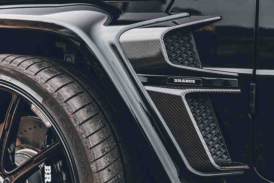 Potpuno crni specijalni model plijeni vizualno s upečatljivo stiliziranom verzijom širokog karoserije Brabus WIDESTAR s mnoštvom karbonskih komponenti i 24-inčnim Brabus Monoblock Z “PLATINUM EDITION” visokotehnološkim kovanim kotačima. Crna shema boja u kombinaciji sa sportskim karbonskim detaljima sustavno se nastavlja u ekskluzivnoj unutrašnjosti #brabus od fine kože. Specijalni model Brabus 900 superblack impresionira ne samo svojim uzbudljivim izgledom i ekskluzivnim značajkama opreme, već prije svega visokim performansama u svom najčišćem obliku. 900 u oznaci modela otkriva da ovaj off-roader pokreće Brabus 900 ROCKET V8 twin-turbo motor povećane zapremine. Dizajniran je na temelju motora iz G63 i opremljen je Brabus poklopcem motora od crvenih karbonskih vlakana što ga čini i vizualnom poslasticom.