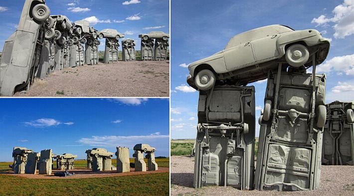 Stonehenge replika zvana Carhenge osim sivih automobila uključuje i nekoliko drugih skupltura izrađenih iz automobila koje su ofarbane različitim bojama. Ova kreativna replika je 2011. bila ponuđena na prodaju za 300.000 dolara.