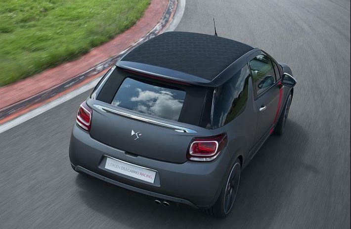 Već na prvi pogled, Citroen DS3 Cabrio Racing privlači nas ultra personalizacijom i sportskim izgledom; od sive mat boje Moondark, preko crnih sjajnih naplataka od 19’’, do crnih ukrasnih kromiranih dodataka na ručicama, prtljažniku i retrovizorima. Ovo konceptno vozilo ponajprije spada u DS liniju i ima izražena njezina obilježja, kao što su sjajni ukrasi DS na crnom platnenom krovu (tkanim poput karbonskih vlakana), gravirani ukrasi na vanjskim retrovizorima, te čeljusti kočnica, pločice na naplatcima, široke bočne letvice, i oznake na vratima u crvenoj boji Carmin. Kočnice, komplet od karbona te način na koji vozilo prianja uz cestu pokazuju stručno znanje tima Citroen Racing. Ova nova izvedba zadržala je performanse trkaće verzije Racing opremljene motorom od 1,6 litara koji razvija 202 konjske snage.
