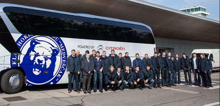 Citroën, vjerni klupski partner, ispratio je hokejaše KHL Medveščaka na kratku turneju u Minsk i Domjeck te za tu prigodu oslikao autobus koji će njihova domaća i bliža putovanja činiti ugodnijim. Za njihovu što udobniju vožnju brinu se najnoviji modeli marke Citroën lansirani ove godine: Citroën DS3 Cabrio, C-Elysée i C4 Picasso. Smionost, inovativnost i kreativnost osnovne su vrijednosti marke Citroën, a poslovna suradnja s KHL Medveščak njen su savršen primjer. Citroën je ponosni sponzor KHL Medveščak od 2010. godine kada je potpisana suradnja na sportskim, promotivnim, edukativnim i ostalim događajima. Optimizam, koji se nalazi u genima marke Citroën, vlada u hokeju što je i razlog uspješne dugogodišnje suradnje.