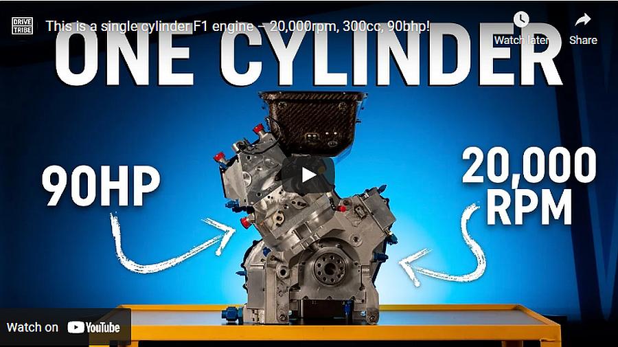 Jednocilindrični F1 motor okreće se s visokih 20.000 o/min, ima obujam 300 ccm i najveću snagu 90 KS