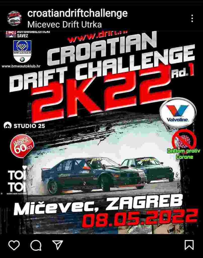 Konačno nakon dvije godine! Idemo opet driftati na Mičevcu! Nakon dvije godine problema sa pandemijom, nadajmo se da se sreća konačno osmjehnula te da će prva utrka u Zagrebu biti održana na ovaj planirani datum. Interes je više nego velik, jer se ništa nije dogadjalo u Hrvatskoj dvije godine, tako da očekujemo veliki broj vozača i natjecatelja..Zato dođite na prvu ovogodišnju utrku i podržite svoje favorite!