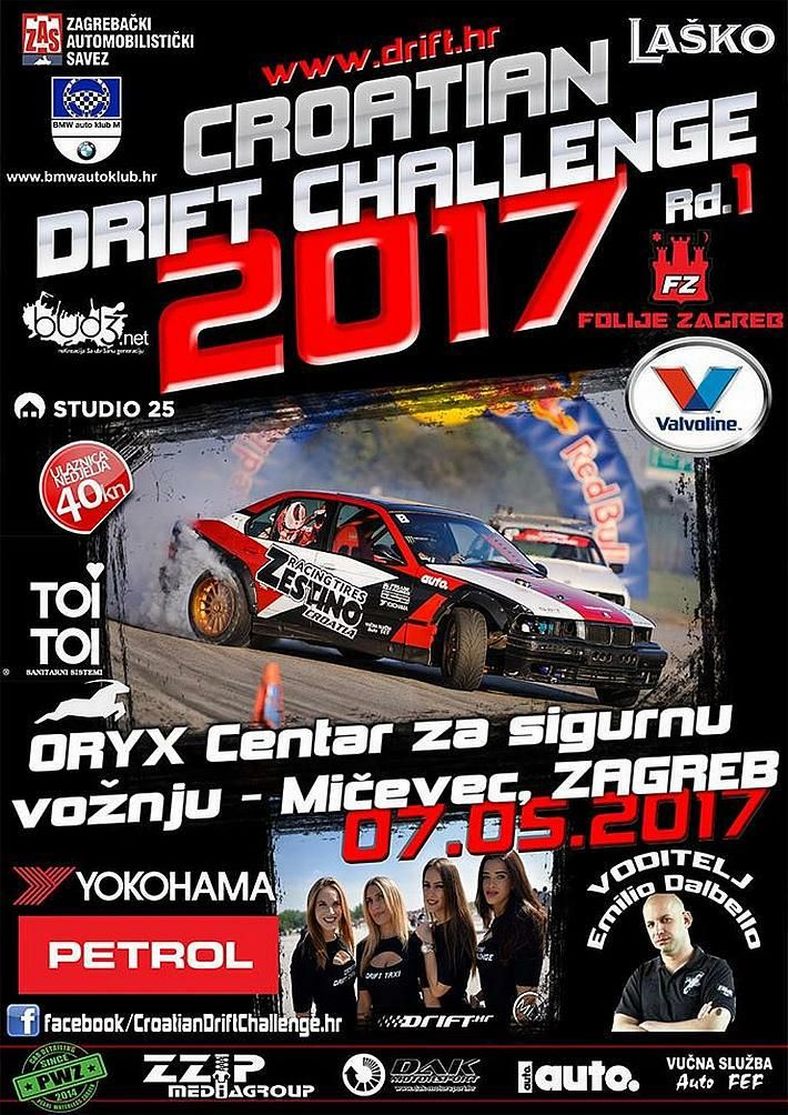 Pred samim startom smo nove Croatian Drift Challenge sezone. Već 7.5.2017. na Mičevcu starta 9. sezona Croatian Drift Challengea!! Ovo natjecanje je izraslo u respektabilno prvenstvo, možda i najjače u regiji uz kvalitetan i konstantan sudački kadar, vrhunske vozače te sve jače i jače Drift automobile. Porast zanimanja za Drift je ogroman pa samim time ekspanzija u regiji doprinosi boljoj kvaliteti samog natjecanja. I ovog puta osim domaćih vozača očekuju se gosti iz Slovenije, Srbije, BIH, Austrije i italije. Kao i svakog puta nudit će se DRIFT TAXI vožnje s natjecateljima u kojem je broj vožnji ograničen na 50. Posjetitelji će moći uživati u atraktivnim hostesama, RC driftu, ili potražiti osvježenje u ponudi jela i pića.. Za nedjelju na dan Utrke cijena ulaznice je 40 kn. Ulaz otvoren od 09:00 h
