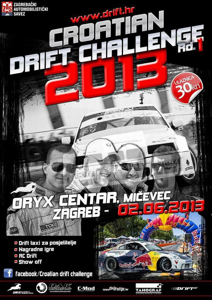 NAPOMENA: Croatian Drift Challenge rd.1 na ORYX Centru u Mićevcu zbog kiše odgođen je za 16. lipnja 2013.
