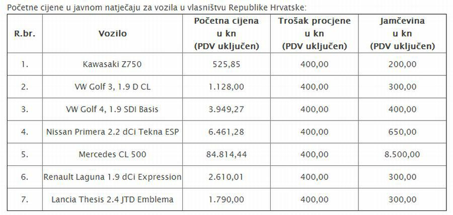Navali narode, još malo po nestalo! Tako bismo mogli opisati ovu priliku za kupnju rabljnog automobila u vlasništvu Republike Hrvatske. Objavljen je Javni poziv za podnošenje ponuda za kupnju vozila u vlasništvu Republike Hrvatske. No, je li to i odista tako i je li to uopće prilika… Čisto sumnjamo kako će se postići početne niske cijene, ima dovoljno onih koji će ih odmah u startu nabrijati, kao i na svakoj prodaji takvih vozila. No, tu je i još jedna „kvaka“ i to poprilično odbojna, u biti čak dvije.