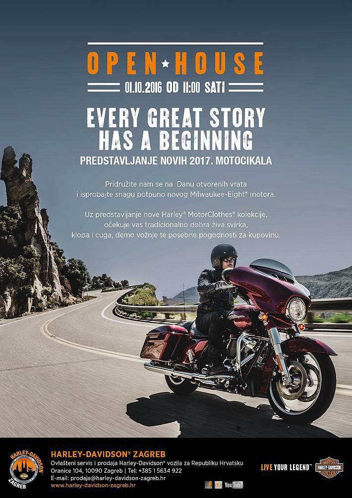 Pridružite se u prodajnom salonu Harley-Davidson Zagreb, Oranice 104 na Danu otvorenih vrata, 01.10.2016. od 11:00 sati, gdje će se predstaviti novi motocikli za 2017., među kojima ćete moći isprobati snagu novog Harley-Davidson Milwaukee-Eight motora na modelu Ultra Limited. Ovaj motor osigurava više snage i poboljšano iskustvo za motocikliste uz zadržavanje kultnoga izgleda, zvuka i osjećaja koji su stvorili prethodnici. Od novih motocikala biti će izloženi Road King Classic, CVO Pro Street Breakout, Softail Slim S, Night Rod Special i Forty-Eight. Posjetiocima će biti na raspolaganju i demo modeli: Night Rod Special (2017.), Low Rider S, Street Glide Special, Street Bob Limited i Street 750. Predstaviti će se i nova jesensko zimska kolekcija, koja će biti dostupna po promo cijenama, kao i cjelokupni asortiman. Uz žestoku live svirku, finu klopu i cugu, vjerujemo da ćete uživati u Harley danu.