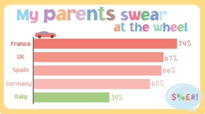 Ispitana djeca stanovnici su Francuske, Njemačke, Italije, Španjolske i Velike Britanije, a njihova mišljenja uvelike se razlikuje od zemlje do zemlje. Tako je pjevanje za vrijeme vožnje najmanje poželjno u Velikoj Britaniji (61%), dok se djeca u Francuskoj njih čak 74% žali na psovanje i vikanje roditelja na druge vozače.