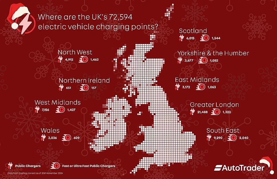 Kako priča ne bi završila samo pričom o Djedu Božićnjaku, na kraju donosimo i kartu Velike Britanije s prikazom gdje se sve nalaze stanice za punjenje električnih automobila u toj zemlji, a kojih je 72.594. A gdje smo mi….