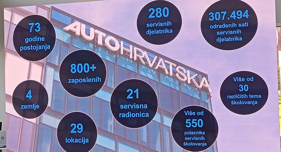 Tvrtka Auto Hrvatska ove godine slavi 73 godine postojanja, radi u četiri zemlje na ukupno 29 lokacija te zapošljava više od 800 ljudi. Auto Hrvatska ima 280 servisnih djelatnika, 21 servisnu radionicu te s ponosom daje podatak kako imaju 307.494 odrađenih sati servisnih djelatnika, a posebno su ponosni na činjenicu kako su do danas imali više od 550.polaznika servisnih savjetovanja, te više od 30 različitih tema školovanja.