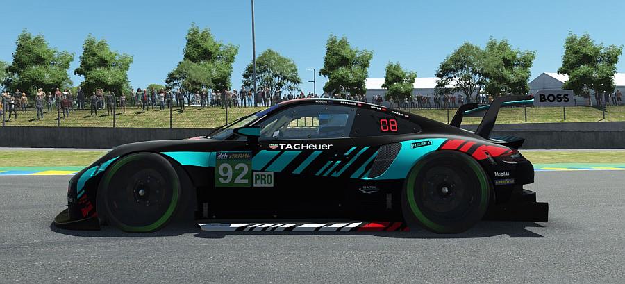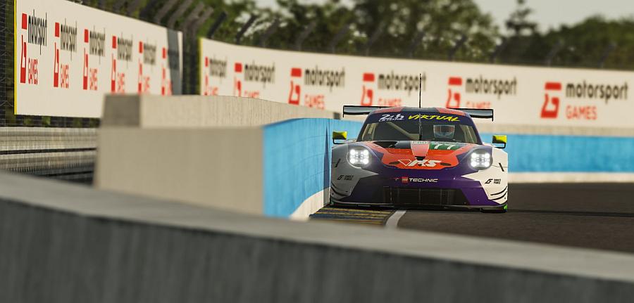 Broj 91 911 bio je jedan od najvećih favorita za pobjedu u klasi, do kraja utrke od 367 krugova, na 13.626 kilometara dugom Circuit des 24 Heures. 911 RSR uspio je nadoknaditi mali nedostatak svojih kraćih 14 krugova između zaustavljanja zbog punjenja goriva u usporedbi s BMW-Team Redlineovim M8 GTE koji je imao brže vrijeme kruga. Nakon šest i pol sati, prebrz ulazak u box rezultirao je kaznom za zaustavljanje i kretanje koja je Porsche koštala 47 sekundi – manjak koji odvozilo nije moglo nadoknaditi u preostalih 18 sati, unatoč punom napadu i besprijekornoj izvedbi. Virtualni Porsche 92 imao je manje sreće. 911 RSR kojeg je vozio aktualni prvak Porsche TAG Heuer Esports Joshua Rogers (Australija), Ayhancan Güven (Turska) i Tommy Östgaard (Norveška) – pobjednici utrke 2020. – kao i američki vozač Indy Cara Sage Karam s vremena na vrijeme vodio je u GTE klasi tijekom noći. Međutim, pije zore, snaga kvarteta rano je završila kada je Östgaarda pregazilo vozilo LMP2 u brzim Porscheovim zavojima. Nakon snažnog udarca o barijere, automobil je bio prisiljen povući se uz veliku štetu.