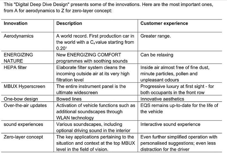 Podržan umjetnom inteligencijom (AI), olakšava vam svakodnevni život u mnogim područjima. EQS se proizvodi, zajedno sa S-klasom i Mercedes-Maybach S-klasom, u potpunosti CO2-neutralnj tvornici 56 kompleksa Sindelfingen, najmodernijem pogonu Mercedes-Benza. Sustavi baterija proizvode se u obližnjem pogonu Mercedes-Benza u Untertürkheimu, tvornici Hedelfingen. EQS na tržište stiže u kolovozu ove godine.