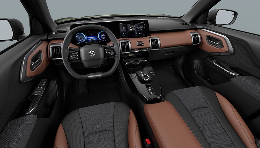 3. Električni 4WD sustav “ALLGRIP-e” kojeg pokreću dvije neovisne e-osovine “ALLGRIP-e” je električni 4WD sustav koji koristi Suzukijevu stručnost u tehnologiji pogona na sva četiri kotača, s dvije neovisne e-osovine sprijeda i straga. Ovaj sustav ne samo da pruža moćne performanse, već također omogućuje preciznu kontrolu s izvrsnim odzivom. Dodatno, uključuje način rada Trail koji omogućuje nesmetan bijeg s neravnog terena primjenom kočnica na gume koje se vrte i raspodjelom pogonskog momenta na suprotnu gumu (LSD funkcija).