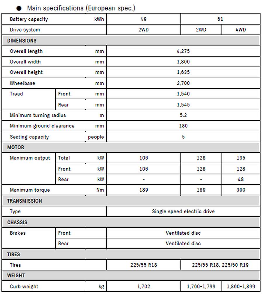 Platforma koristi novorazvijeni “HEARTECT-e” posebno za BEV. Odlikuje ga lagana konstrukcija, zaštita od visokog napona i prostrana unutrašnjost zahvaljujući kratkom prepustu. Glavni pod eliminira podne elemente kako bi se povećao kapacitet baterije.
