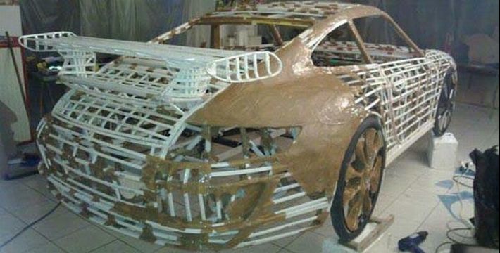 Želite si kupiti Porsche 911, ali nemate dovoljno novaca. Nema problema, napravite si svoj primjerak po uputama za malo novaca. Trebate nešto drva, plastičnih cijevi, karton, folije, dva bicikla i puno kreativnosti i spretnosti, te je vaš Porsche napola gotov.