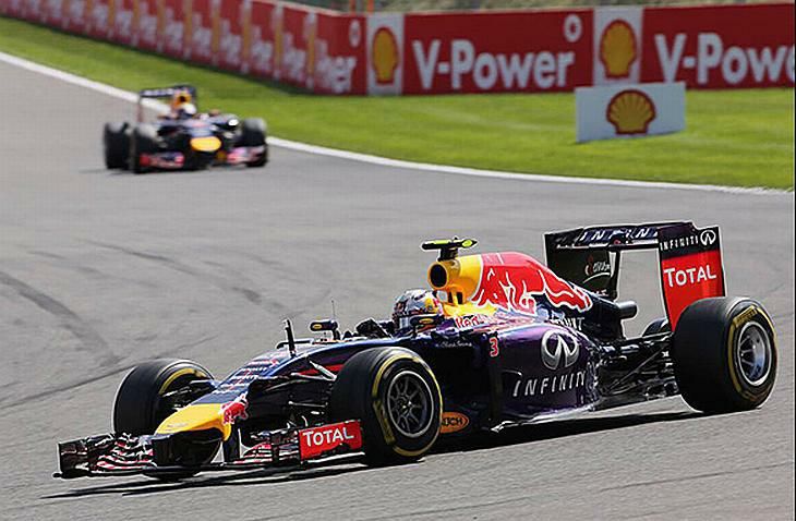 Još u prvom krugu Vettel je napao prvog Hamiltona, ali bilo je to preoptimistično, te je prebrzi Vettel zavoj odvezao preširoko i Rosberg ga prelazi i uzima drugo mjesto. Iza trećeg Vettela smjestili su se četvrti Alonso i peti Ricciardo. Na novo uzbuđenje nismo dugo čekali, jer u 2. krugu od 44 koliko se vozilo, Rosberg napada prvog Hamiltona. To je za Mercedes bio ključni moment utrke, jer dolazi do kontakta, te Rosberg drobi prednji desni spojler na stražnjoj lijevoj gumi bolida Hamitlona, no Hamiltonova guma nije izdržala, te se s probušenom gumom dovukao do boksa. Na stazu se vratio kao 19., te se do kraja utrke nije uspio probiti u gornji dio poretka, te je pred kraj utrke Hamilton zamolio boks da odustanu kako bi poštedio motor daljnjih napora, što mu je i odobreno.