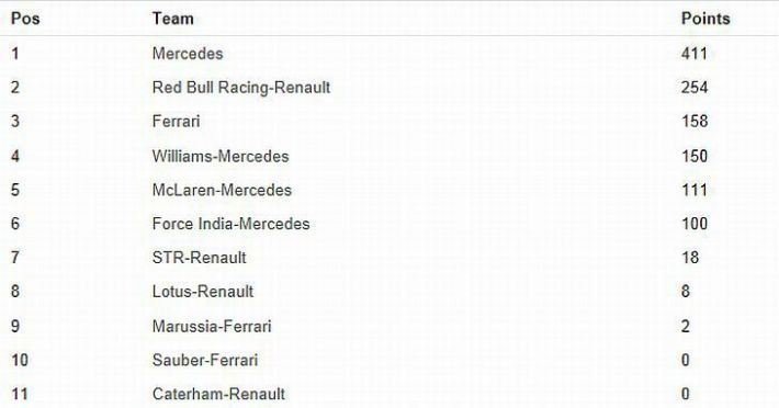 Kada se očekivalo kako će opet iskazanu veliku dominaciju na treninzima i kvalifikacijama bolidi Mercedesa ponoviti na samoj utrci, do toga nije došlo. Utrka je krenula po sunčanom vremenu, proljetno/jesenske temperature, s laganom kišom na pojedinim dijelovima staze, ali već poslije prvih 10 krugova se razvedrilo i kiša više nije bila opasnost. Uzbuđenje je već počelo probnim krugom, koji je krenuo dok je Ferrarijev bolid Alonsa još bio podignut na dizalicama, za što je Alonso kažnjen kaznom od 5 sekundi stop&go koju je morao odraditi tijekom utrke. Na samom startu Rosberg je s pole-positiona katastrofalno startao i do prvog zavoja ga lakoćom prelaze izuzetno brzi na startu Hamilton i Vettel.