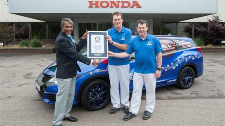 Honda je postavila novi Guinnessov svjetski rekord u štedljivosti u kategoriji najniža potrošnja goriva za automobile – ostvaren kontinuiranom vožnjom kroz 24 kopnene zemlje Europske unije. Ovime je Honda ostvarila svoj cilj. Dokazala je svim potencijalnim kupcima da trenutno na tržištu nudi najštedljiviji dizelski pogonski agregat. Rekord je postavljen sa serijskom Hondom Civic Tourer 1.6 i-DTEC snage 120 KS koja nije smjela pretrpiti apsolutno nikakve izmjene. Vozeći se kroz sve 24 kopnene zemlje europske unije (Austriju, Belgiju, Bugarsku, Češku, Dansku, Estoniju, Finsku, Francusku, Grčku, Hrvatsku, Italiju, Latviju, Litvu, Luksemburg, Mađarsku, Nizozemsku, Njemačku, Poljsku, Portugal, Rumunjsku, Slovačku, Sloveniju, Španjolsku i Švedsku), dvojica članova Hondina europskog razvojnog tima, Fergal McGrath i Julian Warren prevalili su u 25 dana, 13.498 km uz prosječnu potrošnju od svega 2,82 l/100 km. Ostvarena potrošnja manja je od one službeno deklarirane (3,8 l/100 km) za više od 25%.