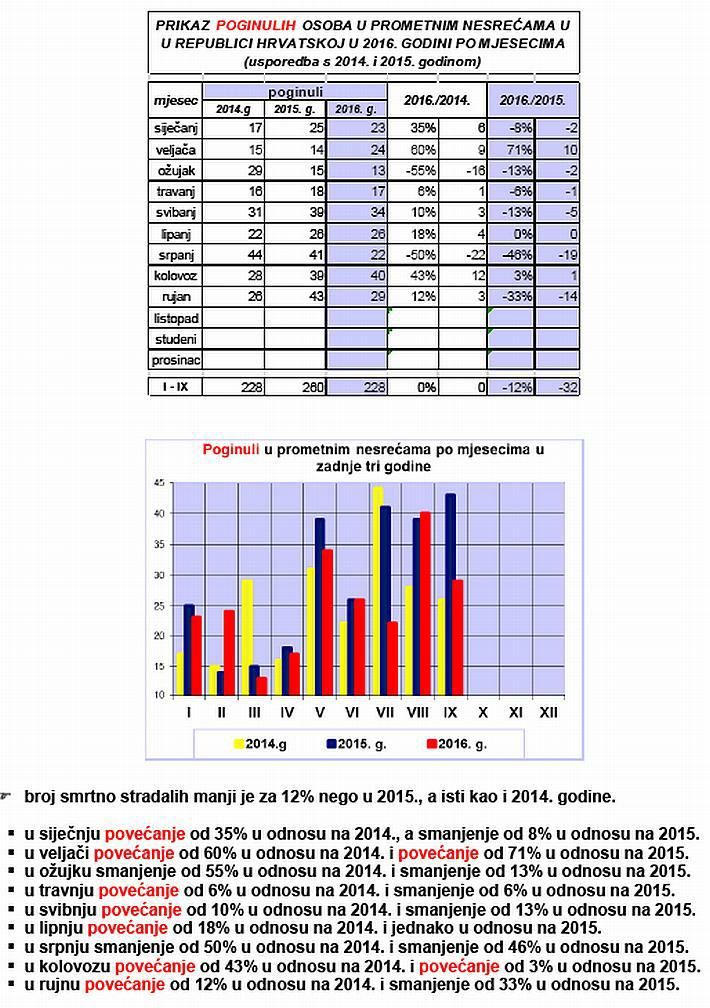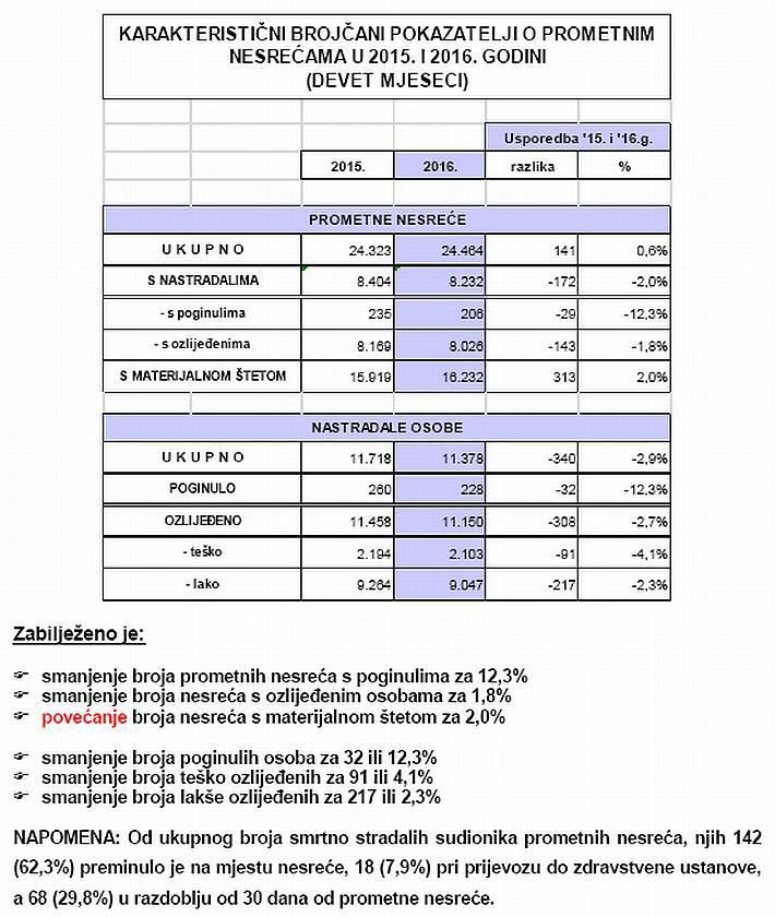 Pročitajte Izvješće o stanju sigurnosti cestovnog prometa Republike Hrvatske za devet mjeseci 2016. godine.: