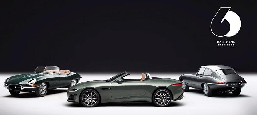 Jaguar je 15. ožujka proslavio 60. godišnjicu kultnog E-tipa, što je bila trenutna senzacija od lansiranja i sinonim za Swinging Sixties. Jaguar Classic je napravio šest limited edition obnovljenih 3,8 E-tipova nadahnutih ikoničnim primjerima ‘9600 KS’ i ’77 RW ‘s predstavljanja sportskog automobila iz Ženeve 1961. godine – svaki par poznat kao E-type 60 Collection. Šest kupea roadstera nadahnutog E-tipa 60 izdanja ‘9600 KS’ napravljeni su u jedinstvenoj Flat Out Grey boji s unutrašnjošću glatke crne kože i detaljima iz 1961. godine. Šest roadstera E-tipa 60 ’77 RW ‘s jedinstvenom bojom Drop Everything Green i kožnom unutrašnjošću od antilopa u zelenoj boji i detaljima iz 1961. godine. Elementi dizajna po mjeri uključuju prigodni logotip E-type 60, koji krasi značku poklopca motora, poklopac za gorivo, pločicu šasije i masku sata u tahometru razvijenom zajedno s Julianom Thomsonom, direktorom dizajna Jaguara.