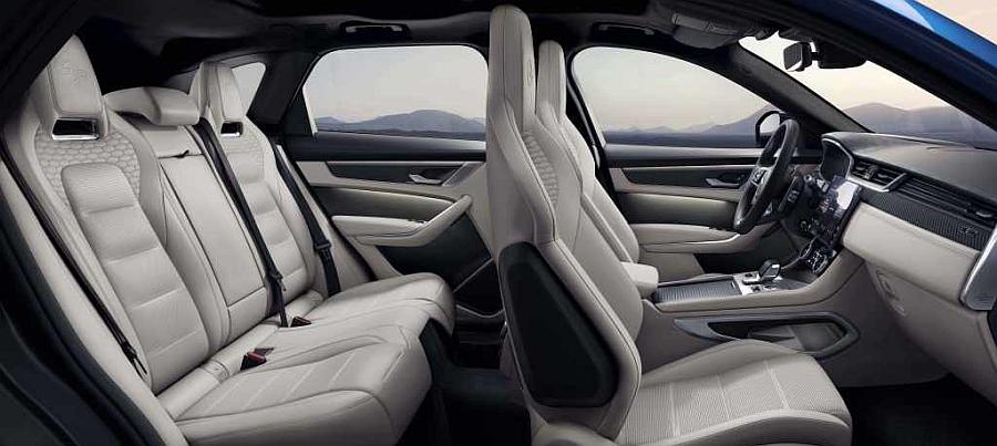 Oblik novog F-PACE-a SVR je nadahnut iskustvom SV-a u motosportu, uz poboljšano strujanje zraka i aerodinamičke pogodnosti postignute zahvaljujući novim otvorima i usisima za poboljšano hlađenje pogonskog sklopa i kočnica. Ove izmjene pružaju vrhunske aerodinamičke performanse uključujući smanjenje uzgona za 35 posto, dok je otpor zraka smanjen s Cd=0,37 na Cd=0,36. Osim poboljšanja performansi, ovi elementi imaju i estetsku funkciju. Unutrašnjost novog F-PACE-a SVR je sveobuhvatno izmijenjena, s materijalima koji naglašavaju dinamičan karakter izmijenjene kabine i upravljačkih sklopki. Sjedala i umetci vrata su obučeni u Alcantaru, s elementima kao što su središnj pretinac i poklopac presvučeni luksuznom kožom Windsor. Interaktivni HD vozački zaslon od 12,3“ je presvučen Alcantarom sa šavovima boje slonovače, pri čemu su umetci s uzorkom aluminija standardna oprema, a ugljična vlakna su dostupna kao opcija. Opcijska sportska sjedala od umjetne kože s romboidnim prošivima nadahnutima naslijeđenim logom preko prednjeg ramenog pojasa, odlikuju se jedinstvenom perforacijom na naslonu, a isti je uzorak korišten na koži na pozadini naslona. Ispupčeni logo SVR na naslonima za glavu daje dodatni pečat.