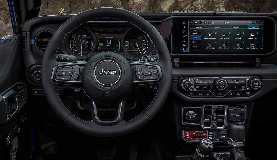 Jeep Wrangler ima u vjetrobran integriranu nevidljivu antenu, pet potpuno novih dizajna kotača i višestruke opcije, uključujući ekskluzivni Sky One-Touch power top. Profinjena unutrašnjost s više tehnologije i pogodnosti, uključujući dostupna prednja sjedala podesiva u 12 smjerova, potpuno novu ploču s instrumentima sa sustavom Uconnect 5 s najsuvremenijim 12,3” radiom s dodirnim zaslonom i standardnim bežičnim Apple CarPlay i Android Auto. Wrangler sada nudi standardno upozorenje o pospanosti vozača, upozorenje o napuštanju trake i informacije o prometnim znakovima. Wrangler 4xe iz 2024. podržava strategiju elektrifikacije marke Jeep i bit će glavna verzija u Europi.