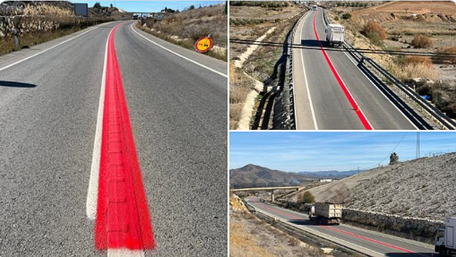 Crvena linija u svakom slučaju je velika novost na području horizontalne signalizacije, koju za sada nismo sreli na hrvatskim cestama. Radi se punoj crvenoj liniji koja se za sada može vidjeti samo u Španjolskoj u Andaluziji na državnoj cesti kod grada Malaga. Treba istaknuti kako je to na jednom dijelu državne ceste na kojoj je kolnik inače podijeljen s dvostrukom punom bijelom linijom, a sada je obojena u širu crvenu punu liniju. Postavila ju je vlada Andaluzije, jer je na toj dionici prošle godine u prometnim nesrećama smrtno stradalo 10 osoba, te spada u najopasnije ceste u Španjolskoj. Sada je napravljen test te su dvije pune bijele linije precrtane debljom punom crvenom linijom koja označava kako je na toj dionici STROGO ZABRANJENO PRETJECANJE. Tek po završetku pokusnog vremena pokazat će se kolika je uspješnost ove nove horizontalne signalizacije.