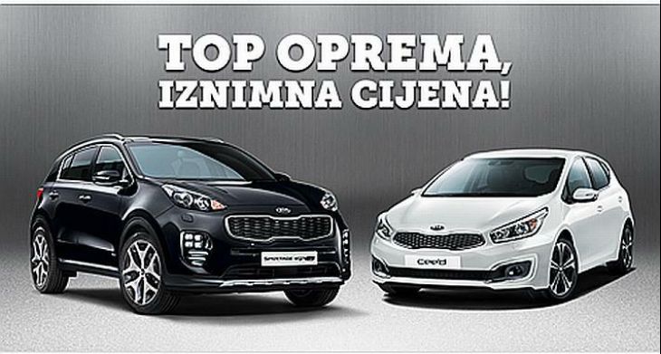 Kia Hrvatska pripremila je za svoje kupce izuzetno povoljnu prodajnu akciju pod imenom 'TOP oprema, iznimna cijena'. Kia je veliki pobjednik zadnjeg istraživanja o kvaliteti institucije J. D. Power.U ssklopu prodajne akcije u ponudi su modeli KIA cee'd i KIA Sportage čijom kupnjom ostvarujete dodatne uštede do 21.000 kuna. Novi KIa Sportage dizel sada košta samo184..990 kuna, a novi Kia cee'd od 99..990 kuna. Ponuda vrijedi samo do isteka zaliha. Više informacija na linku http://www.kia.hr/akcija