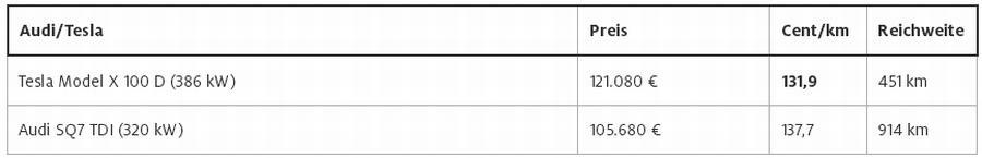 - Tesla Model X 100 D (386 kW): 131,9 Cent/km