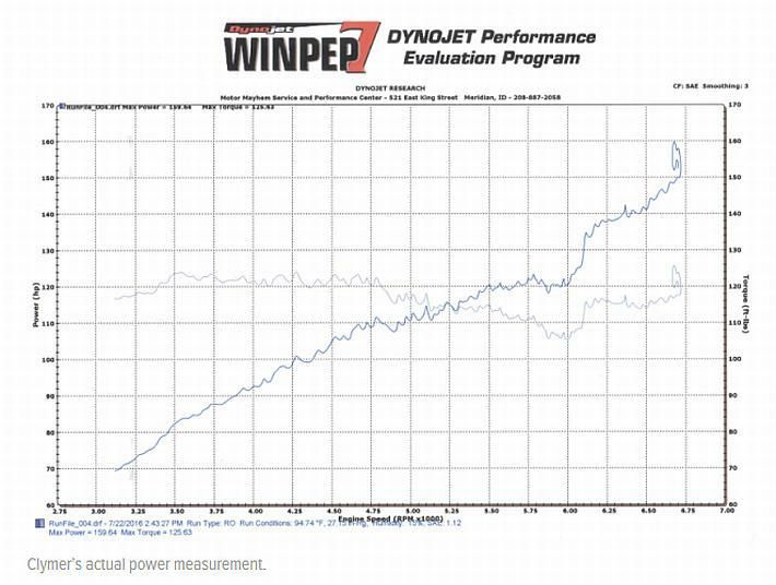 To su vrlo dobri rezultati, jer uvidom u mehaničarski priručnik za Acuru vidi se kako je dozvoljen minimalni pritisak od 135 psi (9,3 bara) uz maksimalnu razliku među cilindrima od 29 psi (2 bara). Na valjcima (Dyno test) izmjerena je snaga od 159,64 HP (161,85 KS) i okretni moment 125,63 lb-ft (170,33 Nm).