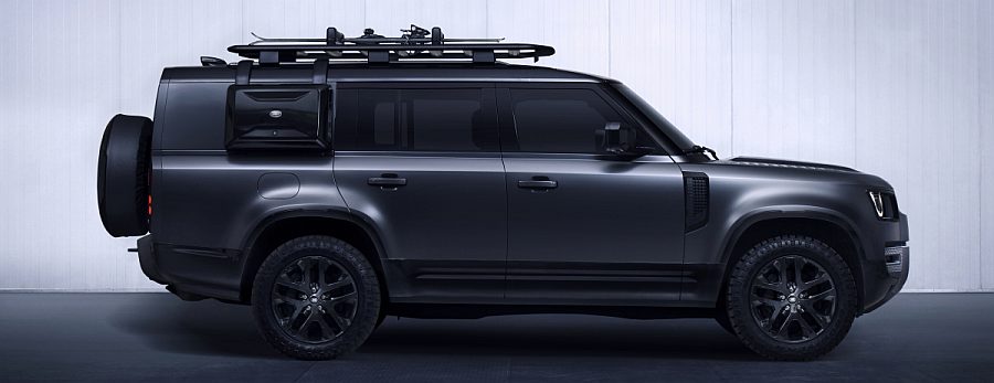U paleti boja su Fuji bijela, Santorini crna, Carpathian siva i Eiger siva, dok prepoznatljive stražnje ploče u boji karoserije i završeci D-stupa upotpunjuju vanjska poboljšanja. Za klijente kojima je potrebna vrhunska otpornost na ogrebotine izvan utabanih staza, dostupna je Satenska zaštitna folija. U unutrašnjosti, klijenti mogu odabrati luksuznu punu kožu Windsor ili izdržljivu tkaninu Resist, koja nudi opcije taktilnog materijala koji najbolje odgovara njihovom životnom stilu. Na svima je završni sloj Ebony, sa stropnom oblogom Ebony Morzine, završnom oblogom Robustec i Defenderovom prepoznatljivom poprečnom gredom sa Satenski crnim Powder Coat Brushed završnim slojem. Na početku i na kraju svake aktivnosti praktični detalji štite unutrašnjost. Istrajna gumena podna obloga može se otklopiti prema dolje kako bi zaštitila odbojnik prilikom utovara glomazne ili teške opreme poput bicikala ili kofera. U dodatnim prostorima za pohranu sigurno će biti pohranjeni manji predmeti izvan pogleda, dok dodatne točke za pričvršćivanje i nova mreža za teret znače da se različita velika ili mala oprema za aktivnosti na otvorenom može pričvrstiti tijekom vožnje, spremna za akciju po dolasku.