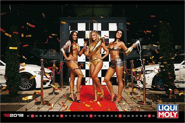 Tvrtka Liqui Moly proizvodi motorno ulje, aditive i druga maziva koja se koriste tijekom održavanja vozila. Kao i svih godina do sada, tako je Liqui Moly i za kraj 2017. godine pripremio atraktivan erotski kalendar koji će vjerujemo visjeti u svakoj mehaničarskoj radionici. Specifilčnost ovog kalendara je što ima 13 mjeseci, a ne 12 mjeseci kako je uobičajeno. Ovogodišnji kalendar ima 14 modela koji su snimani u automobilskom ambijentu.