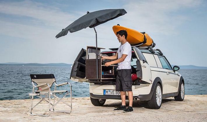 Mini je izradio koncepte Mini Clubvan Camper i Mini Countryman All4 Camp za kampiranje. U tankom koferu elegantnog oblika smještenog na krovu Minija krije se rasklopni šator s bočnim platnenim stranicama i krovom koji se odigne, dovoljno da se pomoću stepenica dvije osobe popnu u šator na krovu Minija i uživaju u snu ili lijepom pogledu kroz vrata i prozore.