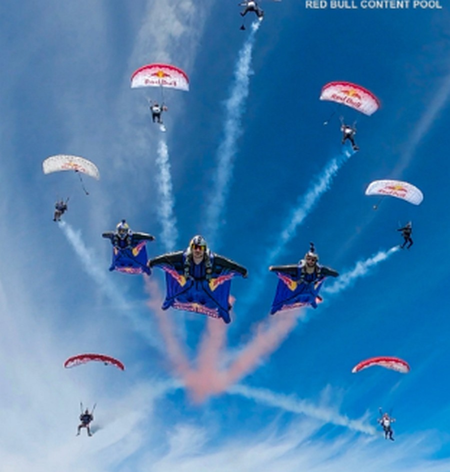 Za jedan od najneobičnijih i najkomentiranijih trenutaka pobrinuli su se Red Bull Air Force veterani Jon Devore i Luke Aikins. U pravoj filmskoj sceni, iz zrakoplova je izbačen jetski, a Devore i Aikins su skočili za njim s padobranima. Ovaj prizor je pokazao koliko su granice kreativnosti i izvedbe u ekstremnim sportovima danas široke. Jon Devore je jedan od najiskusnijih profesionalnih skydivera povezan s Red Bull Air Force timom, poznat po zračnim koreografijama i projektima na najvišoj razini produkcije. Luke Aikins je međunarodno poznat padobranac i pilot koji stoji iza povijesnih skokova bez padobrana i brojnih inovativnih zračnih projekata. Sebastian Alvarez, Andy Farrington i Mike Swanson izveli su niz vratolomija u wingsuit odijelima, prolazeći kroz zračni poligon pun izazova koji je zahtijevao vrhunsku preciznost, nevjerojatnu kontrolu tijela i potpunu koncentraciju. Wingsuit poligon prepreka zahtijevao je prolazak kroz zračne elemente koji su bili postavljeni na različitim visinama te je predstavljao izazov kakav se ne susreće u standardnim wingsuit nastupima.