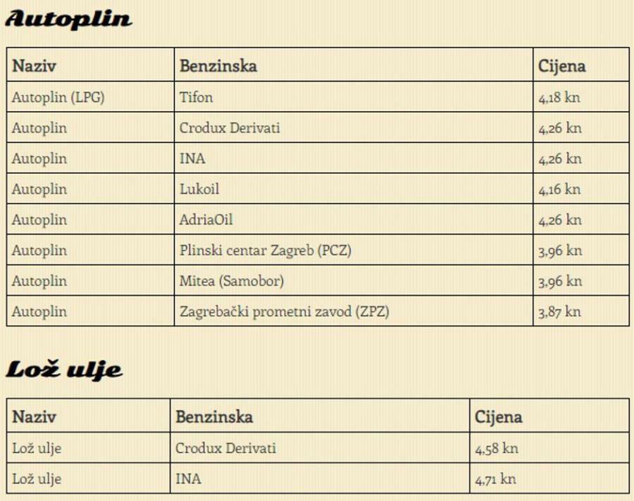 cijena autoplina kreće se od 3,96 do 4,26 kuna za litru