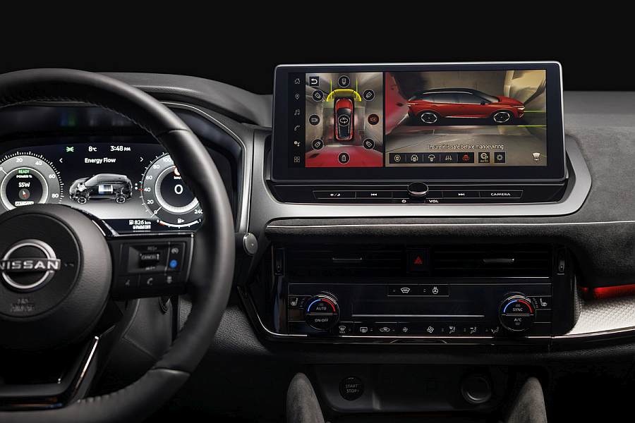Nadalje, tehnologija Around View Monitor pomaže vozačima da se na sigurniji način uključe na cestu koja nije dovoljno pregledna. Naime, sustav upotrebljava širokokutnu prednju kameru koja na središnjem zaslonu u unutrašnjosti prikazuje područje ispred poklopca motora. Kao i u slučaju funkcije „Memoriranja lokacije parkirnog mjesta”, u navigacijsku memoriju sustava AVM moguće je pohraniti i nedovoljno pregledne lokacije kako bi se one automatski aktivirale kada se približite raskrižju. Grafika sučelja TFT zaslona za vozača također je donekle izmijenjena. Instrumenti na zaslonu poprimaju crvenu boju kada je aktiviran način rada Sport, zelenu kada je aktiviran način rada Eco ili svijetlo sivu u standardnom načinu rada – bez obzira na to upotrebljava li se standardni ili napredni prikaz. Od sada je moguće aktivirati i „minimalistički” način rada koji prikazuje samo odabrani stupanj prijenosa, način rada i brzinu, a sve kako bi se ograničila dostupnost informacija koje mogu omesti vozača. U inačicama opremljenima tehnologijom e-POWER, standardni prikaz sada uključuje dijagram protoka energije.